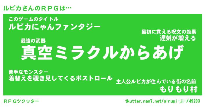 | ヘコむあだ名 | 『ルピにー』『つくし』『ルピお』 |