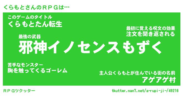 | 男性向けラノベタイトル風あだ名 | 『クラモトアートオンライン』 |