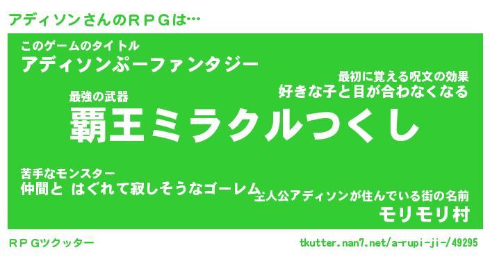 | ファンタジー風あだ名 | 『アデフェル』『エターナルアディソンー』 |