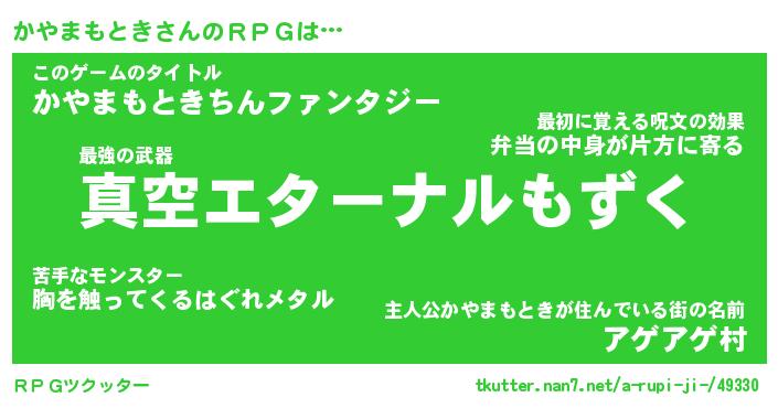 | 胡散臭い通販商品みたいなあだ名 | 『億万長者になれる水晶球…その名も「かやまもとき」』 |