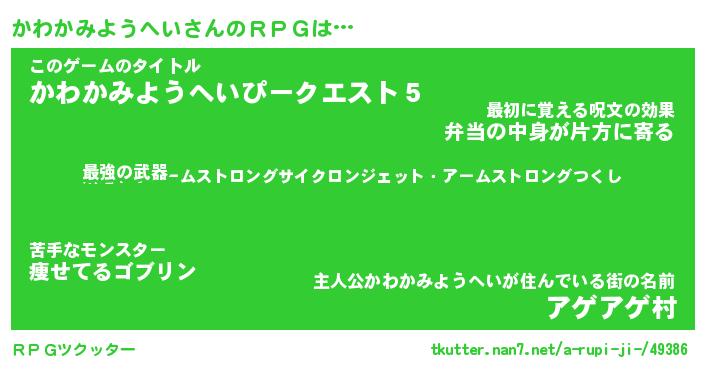 | 伝説のあだ名 | 『封印されし竜騎士かわかみようへい』 |