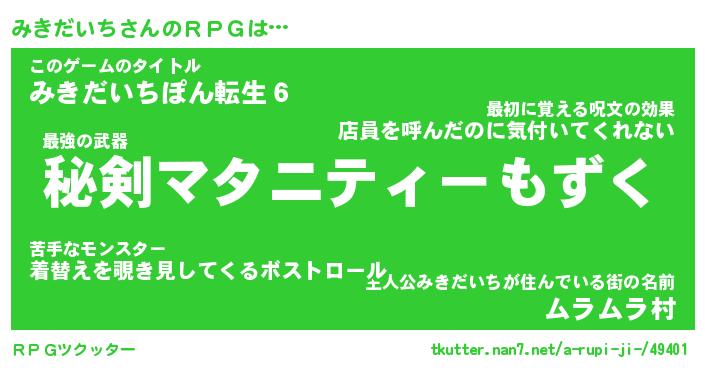| 男性向けラノベタイトル風あだ名 | 『みきだいちの憂鬱』 |