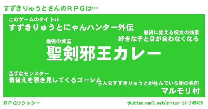 | ヒーロー風カッコイイあだ名 | 『スーパースズキリュウト』 |