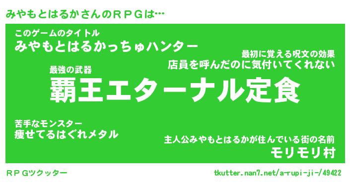 | 胡散臭い通販商品みたいなあだ名 | 『億万長者になれる水晶球…その名も「みやもとはるか」』 |