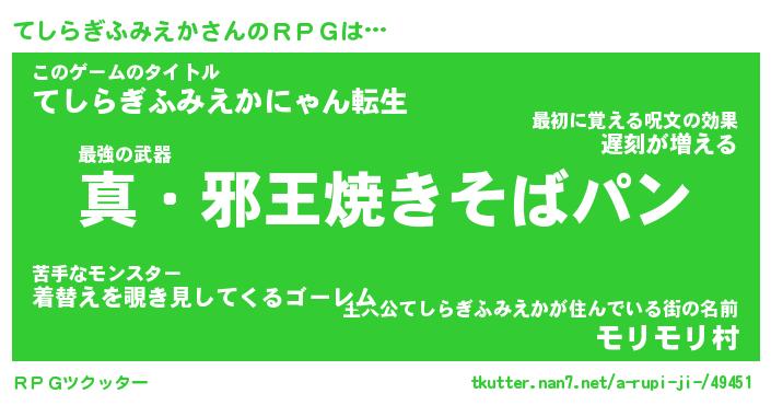 | 男性向けラノベタイトル風あだ名 | 『テシラギフミエカアートオンライン』 |