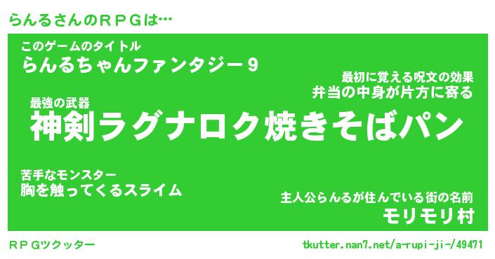 | ファンタジー風あだ名 | 『ランフェル』『エターナルランルー』 |