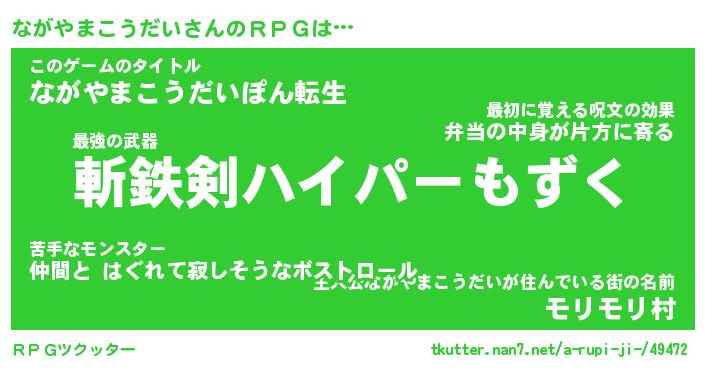 | 胡散臭い通販商品みたいなあだ名 | 『必ず成功するブレスレット…その名も「ながやまこうだい」』 |