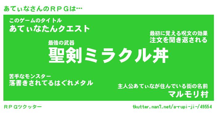 | 伝説のあだ名 | 『伝説の竜騎士あてぃな』 |