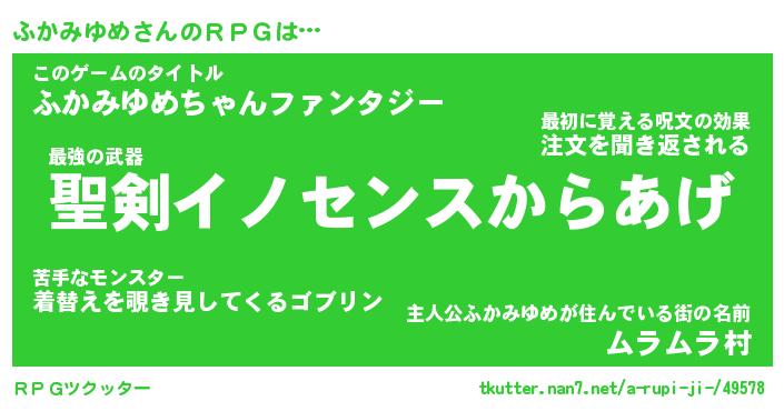 | ヒーロー風カッコイイあだ名 | 『スーパーフカミユメ』『幻影騎士フカ』 |