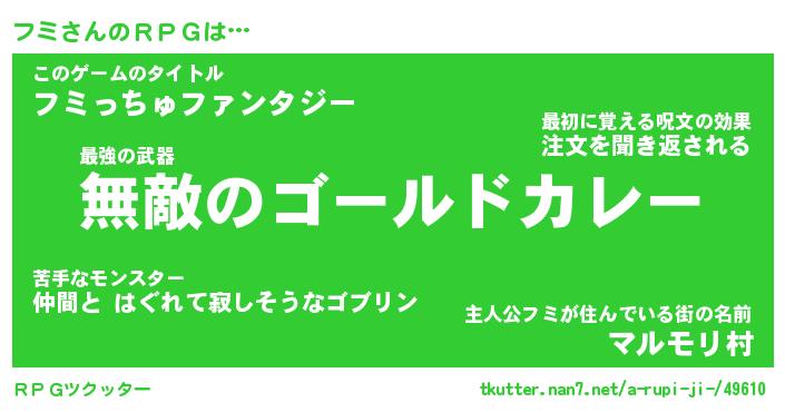 | 男性向けラノベタイトル風あだ名 | 『フミアートオンライン』 |