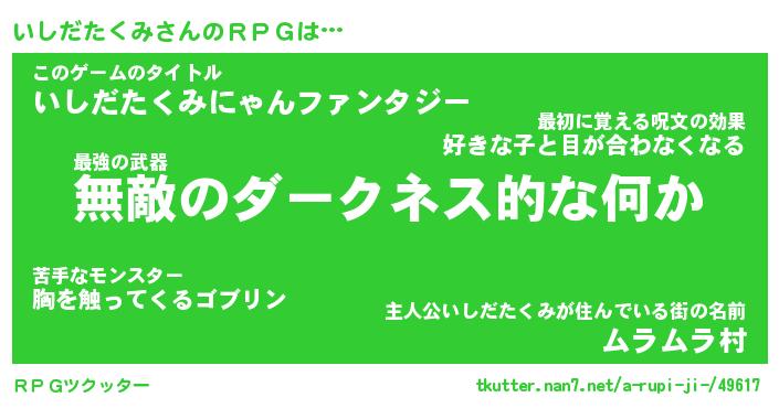 | ツイッター | いしだたくみさんのツイッターID『namakemono_idle』 |