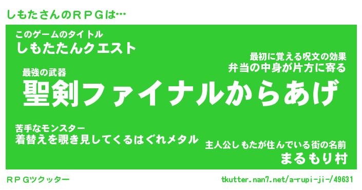 | 胡散臭い通販商品みたいなあだ名 | 『必ず成功する水晶球…その名も「しもた」』 |