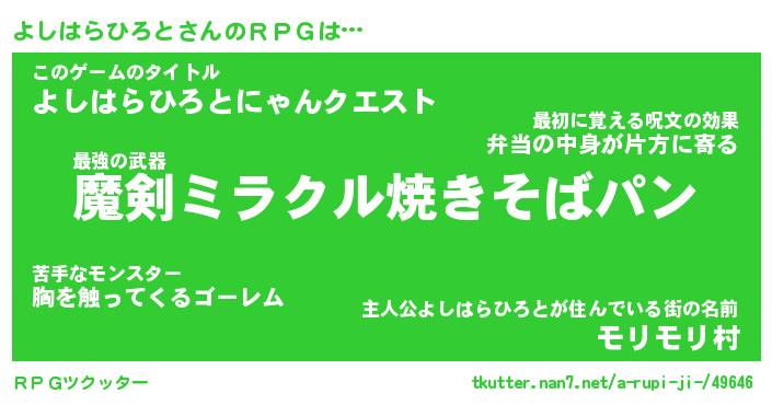 | 伝説のあだ名 | 『伝説の竜騎士よしはらひろと』 |