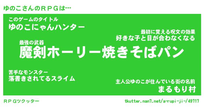 | 意味不明あだ名 | 『ペロリンゆのこ』『ゆのこフォーエバー』 |