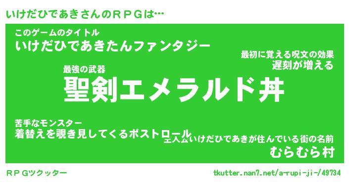 | 胡散臭い通販商品みたいなあだ名 | 『必ず成功する霊験あらたかなお札…その名も「いけだひであき」』 |