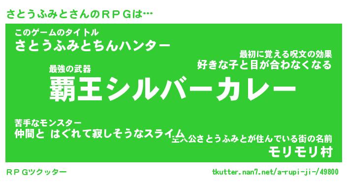| ヒーロー風カッコイイあだ名 | 『スーパーサトウフミト』『銀牙騎士サト』 |