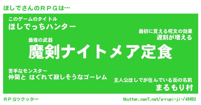 | 男性向けラノベタイトル風あだ名 | 『ほしでの憂鬱』 |