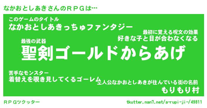 | 伝説のあだ名 | 『伝説のスナイパーなかおとしあき』 |