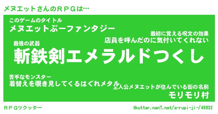 | ファンタジー風あだ名 | 『メヌフェル』『エターナルメヌエットー』 |