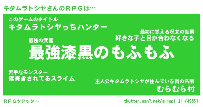 | 男性向けラノベタイトル風あだ名 | 『キタムラトシヤアートオンライン』 |