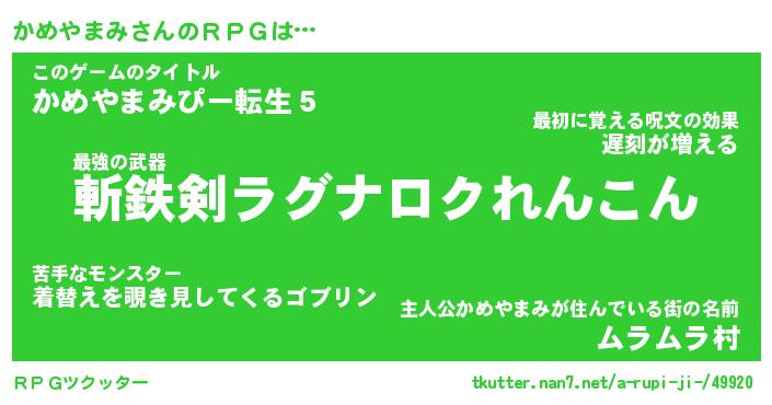 | ファンタジー風あだ名 | 『カメフェル』『エターナルカメヤマミー』 |