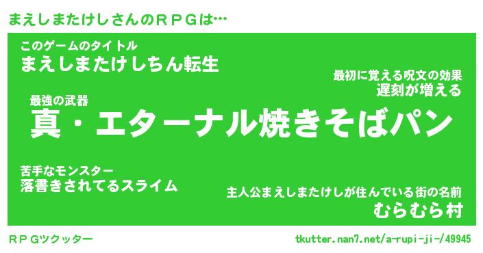 | 胡散臭い通販商品みたいなあだ名 | 『億万長者になれる水晶球…その名も「まえしまたけし」』 |