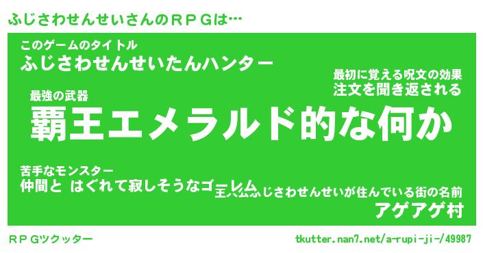 | 男性向けラノベタイトル風あだ名 | 『フジサワセンセイアートオンライン』 |