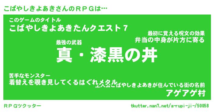 | 男性向けラノベタイトル風あだ名 | 『コバヤシキヨアキアートオンライン』 |