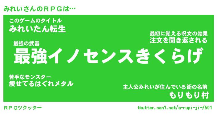 | 男性向けラノベタイトル風あだ名 | 『ミレイアートオンライン』 |