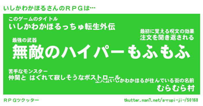 | 胡散臭い通販商品みたいなあだ名 | 『億万長者になれるブレスレット…その名も「いしかわかほる」』 |