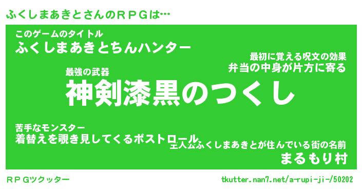 | 女子向けラノベタイトル風あだ名 | 『ふくしまあきと姫と円卓の騎士』 |
