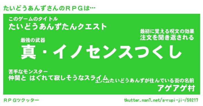 | 伝説のあだ名 | 『封印されしスナイパーたいどうあんず』 |