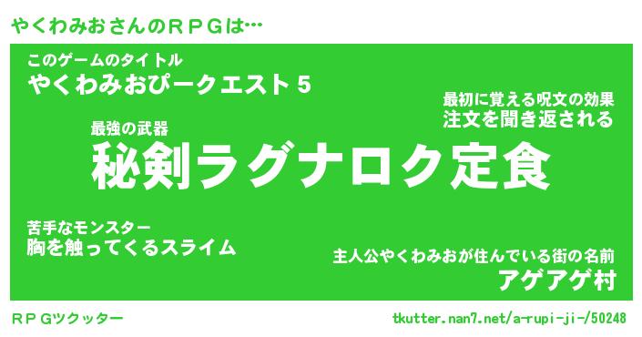 | ファンタジー風あだ名 | 『ヤクフェル』『エターナルヤクワミオー』 |