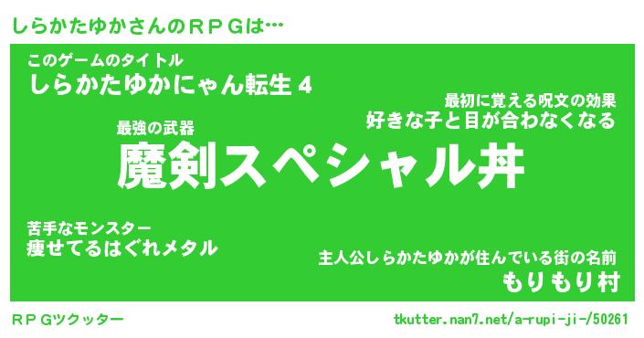 | 伝説のあだ名 | 『伝説の竜騎士しらかたゆか』 |