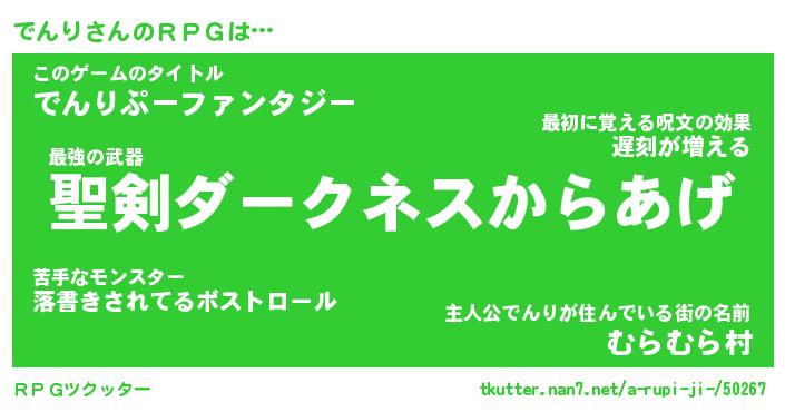 | 伝説のあだ名 | 『伝説の傭兵でんり』『最強の忍者でんり』 |