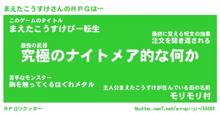 | 胡散臭い通販商品みたいなあだ名 | 『モテモテ間違いなし霊験あらたかなお札…その名も「まえたこうすけ」』 |