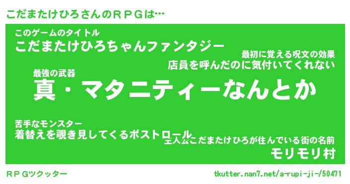 | 胡散臭い通販商品みたいなあだ名 | 『億万長者になれる霊験あらたかなお札…その名も「こだまたけひろ」』 |