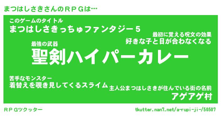 | ヒーロー風カッコイイあだ名 | 『スーパーマツハシサキ』『幻影騎士マツ』 |