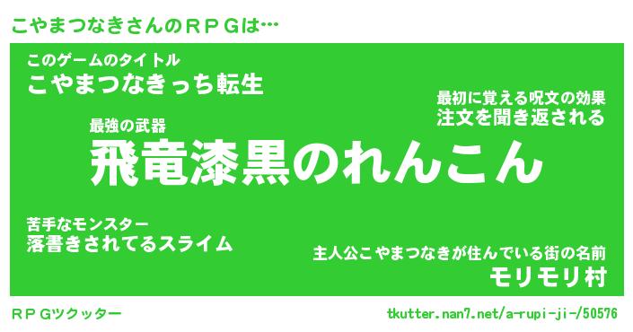 | 男性向けラノベタイトル風あだ名 | 『コヤマツナキアートオンライン』 |