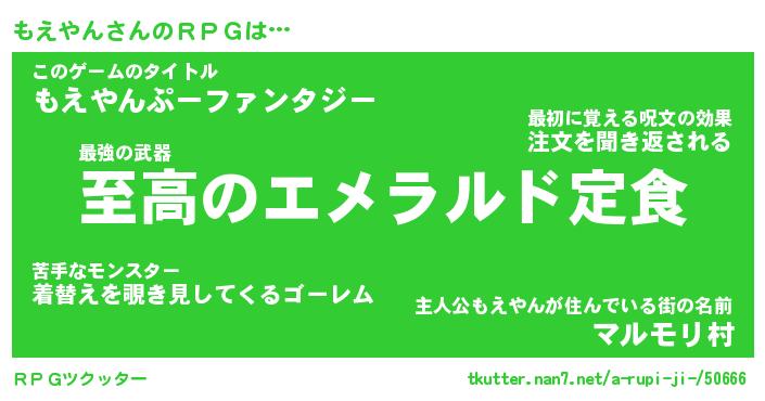 | ファンタジー風あだ名 | 『モエフェル』『エターナルモエヤンー』 |