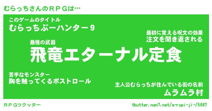| 伝説のあだ名 | 『封印されし傭兵むらっち』 |