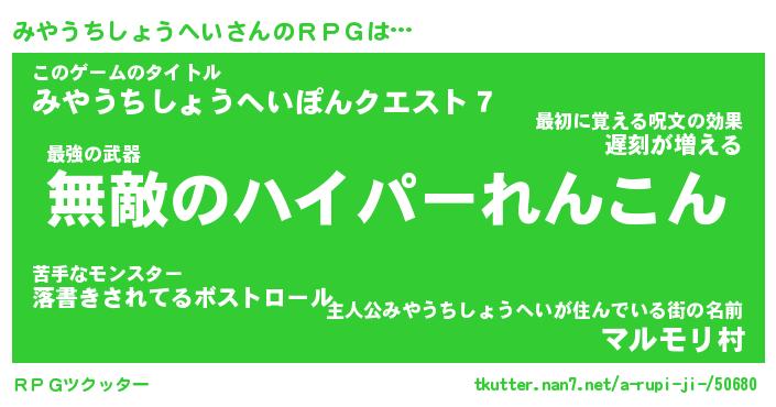 | ピコ太郎風あだ名 | 『ミコ次郎』『ピミ史郎』『ミヤ二郎』 |