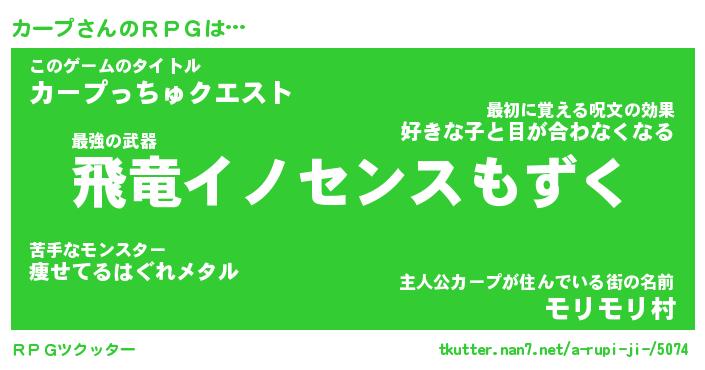 | 男性向けラノベタイトル風あだ名 | 『カープアートオンライン』 |