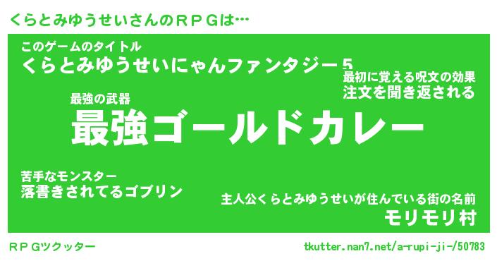 | ヒーロー風カッコイイあだ名 | 『スーパークラトミユウセイ』 |