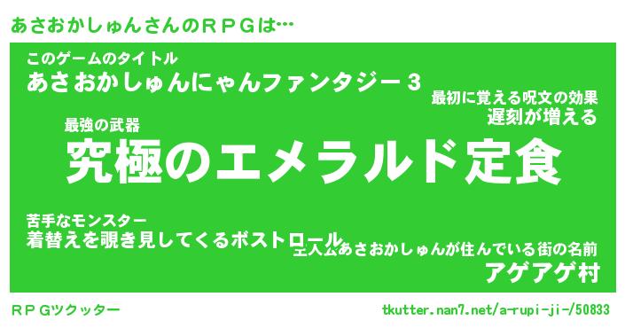 | 男性向けラノベタイトル風あだ名 | 『あさおかしゅんの憂鬱』 |