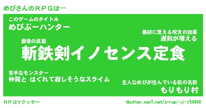| 伝説のあだ名 | 『伝説のスナイパーめび』 |