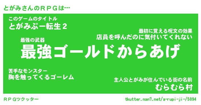 | ファンタジー風あだ名 | 『トガフェル』『エターナルトガミー』 |