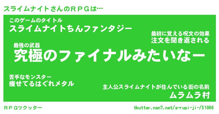 | 胡散臭い通販商品みたいなあだ名 | 『モテモテ間違いなしブレスレット…その名も「スライムナイト」』 |
