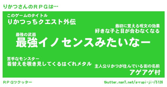 | 男性向けラノベタイトル風あだ名 | 『リカツアートオンライン』 |