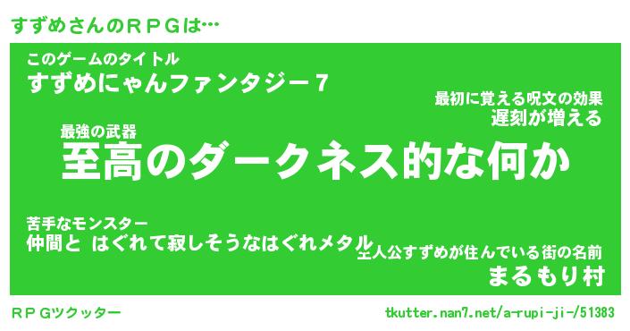| ファンタジー風あだ名 | 『スズフェル』『エターナルスズメー』 |